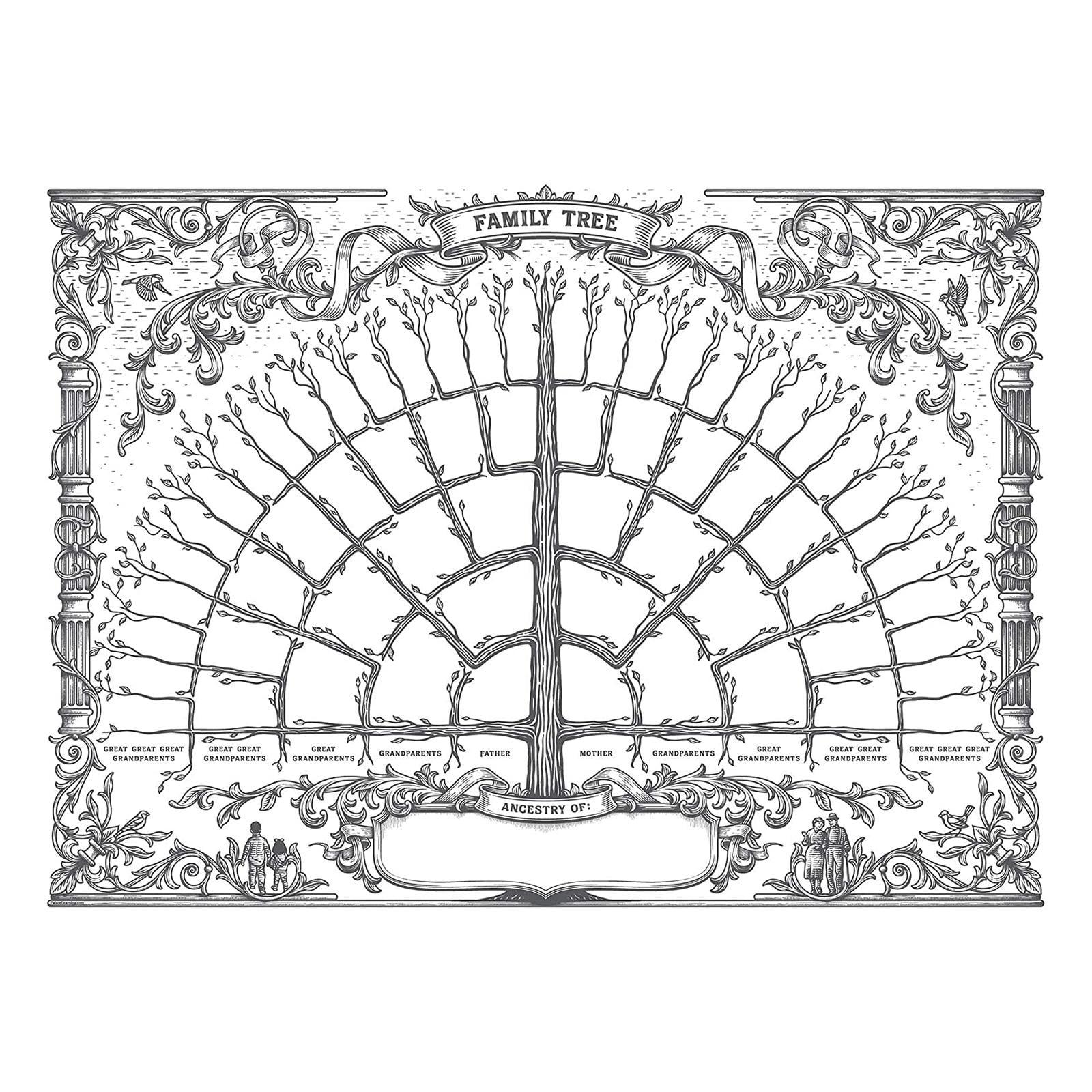 Family Tree Chart 6 Generation Genealogy Poster Fill In Blank Fillable Ancestry Chart For Family Member Walmart Com
